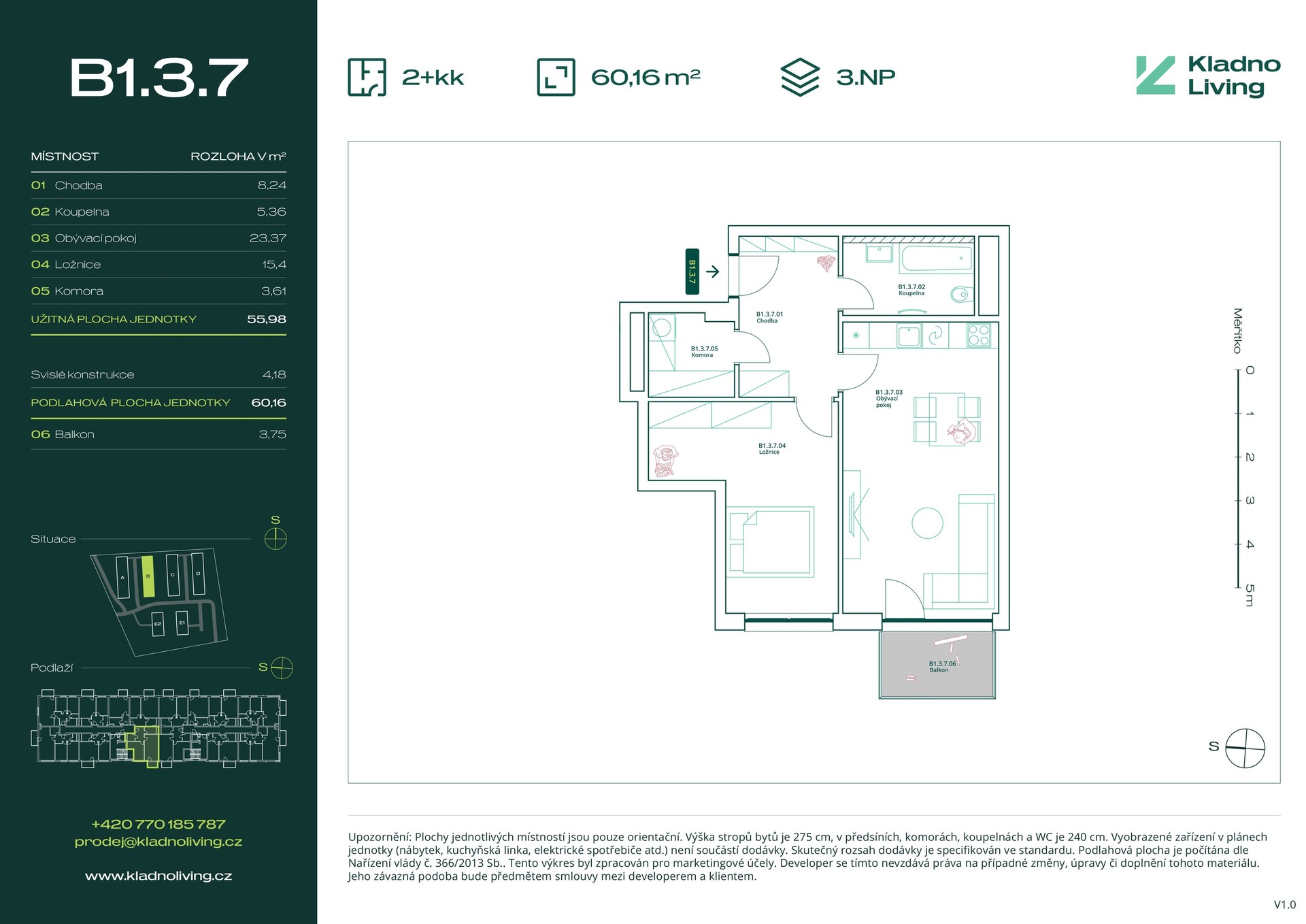 We are offering for sale a modern apartment 2+kt with a floor area of 60,2 sqm and a balcony of 3,8 sqm in the Kladno Living residential project, which is being built in one of the most attractive locations in the city of Kladno – Kročehlavy. This new development project represents a unique opportunity for those looking for new apartments in Kladno or an investment in real estate with high appreciation potential.
