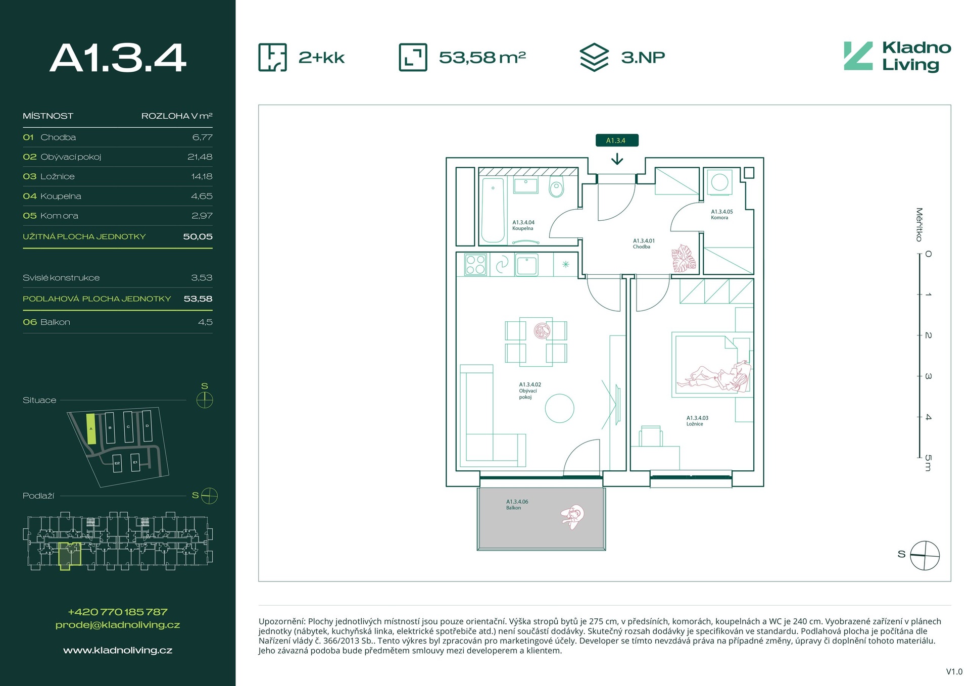 We are offering for sale a modern apartment 2+kt with a floor area of 53,6 sqm and a balcony of 4,5 sqm in the Kladno Living residential project, which is being built in one of the most attractive locations in the city of Kladno – Kročehlavy. This new development project represents a unique opportunity for those looking for new apartments in Kladno or an investment in real estate with high appreciation potential.