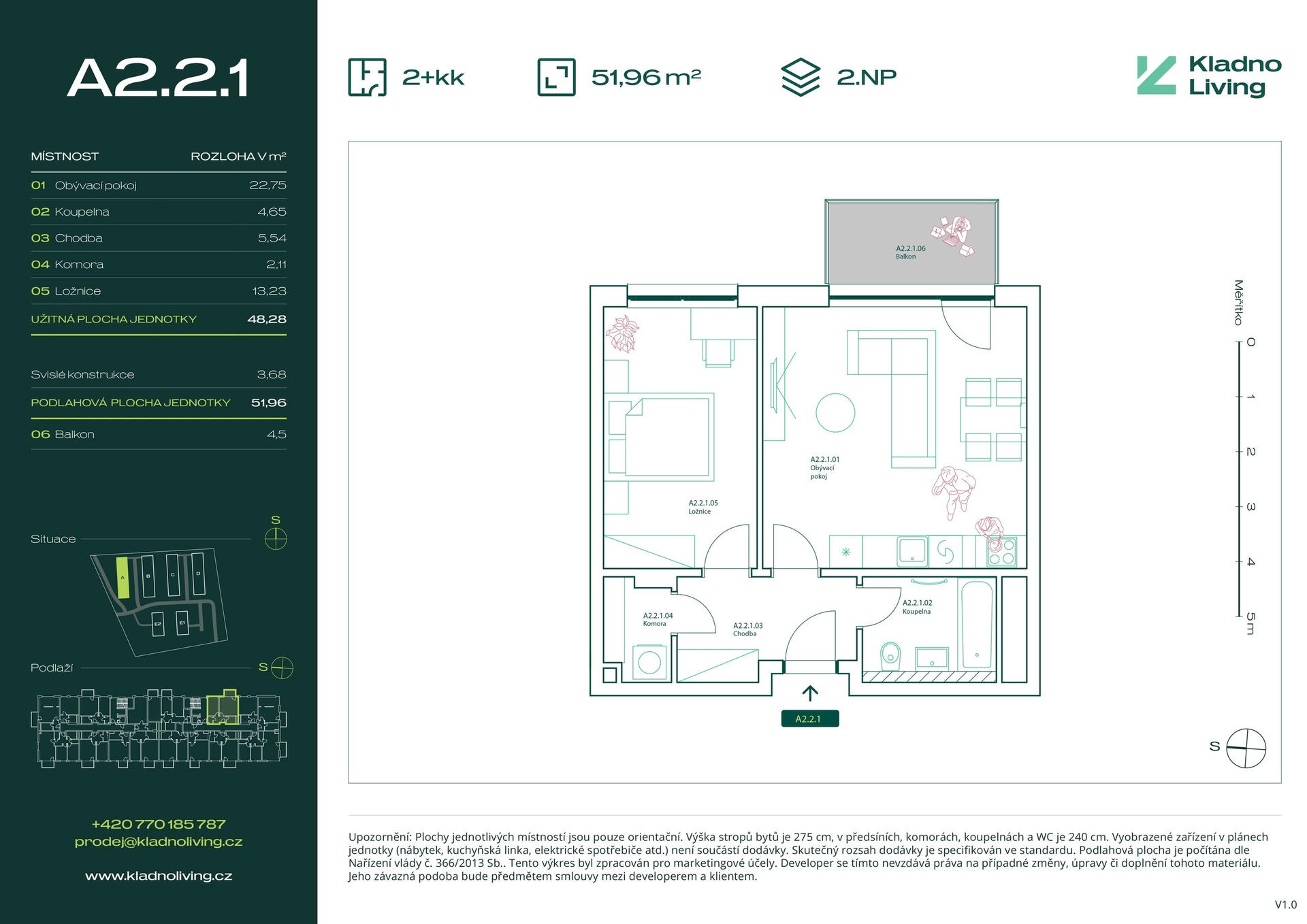 | KL-A122 | 2 + kitchenette | 1st floor | 50 m2 | 54 m2 | No / 4 m2 / No | No | Reserved | Detail |