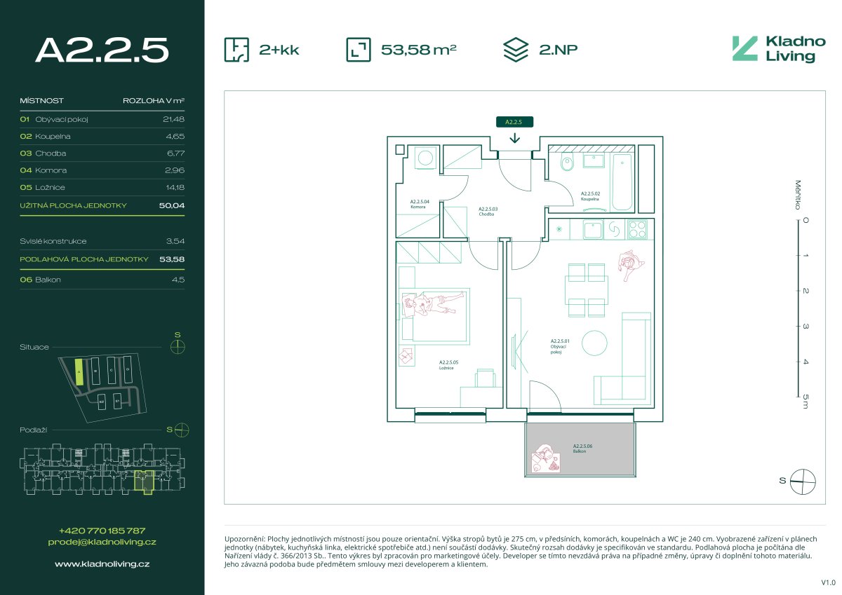 | KL-A134 | 2 + kitchenette | 2nd floor | 50 m2 | 54 m2 | No / 5 m2 / No | No | Reserved | Detail |