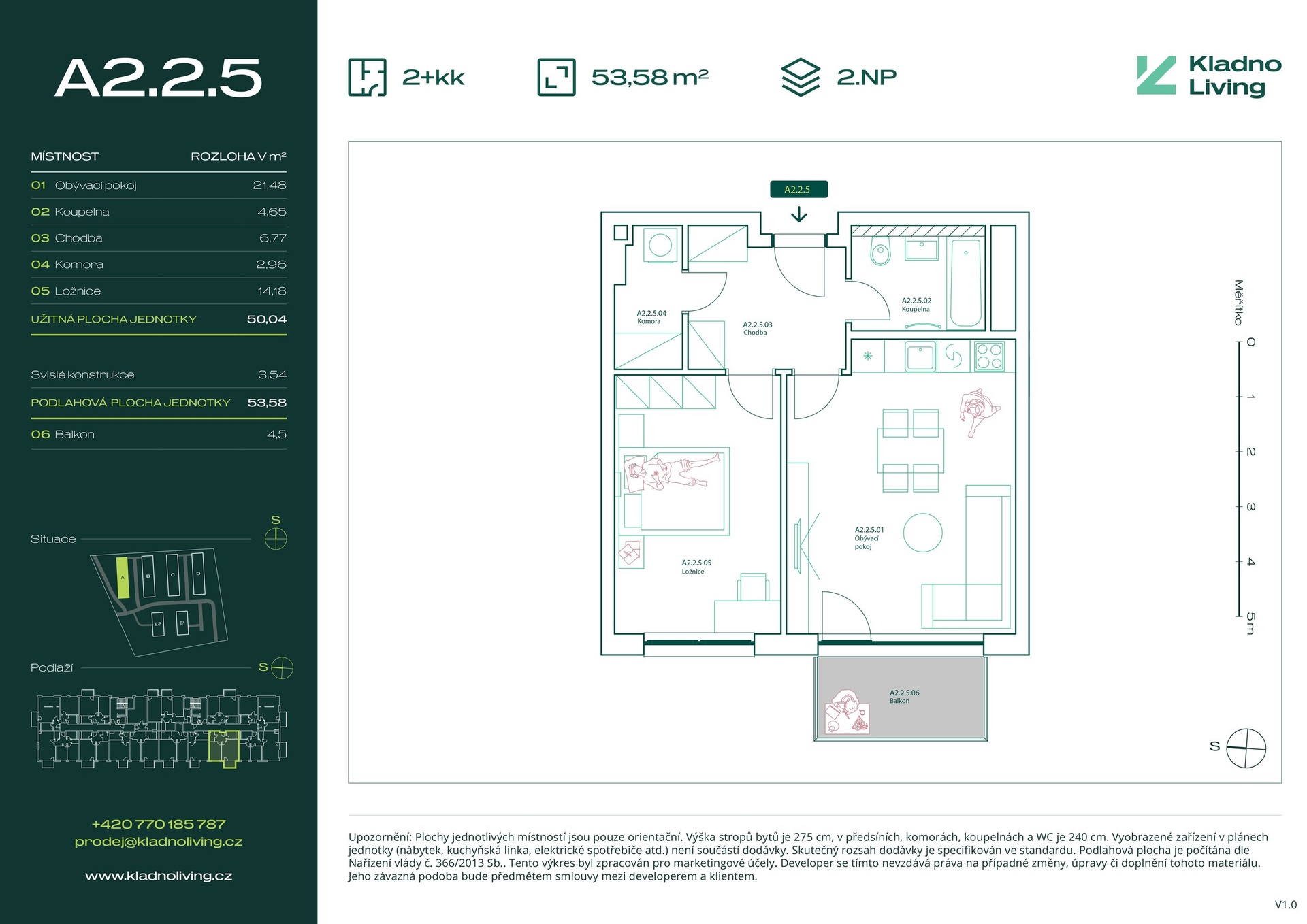 | KL-A134 | 2 + kitchenette | 2nd floor | 50 m2 | 54 m2 | No / 5 m2 / No | No | Reserved | Detail |