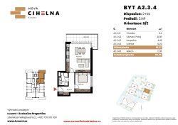 | NC-A234 | 2 + kitchenette | 2nd floor | 53 m2 | 56 m2 | No / 12 m2 / No | No | Reserved | Detail |
