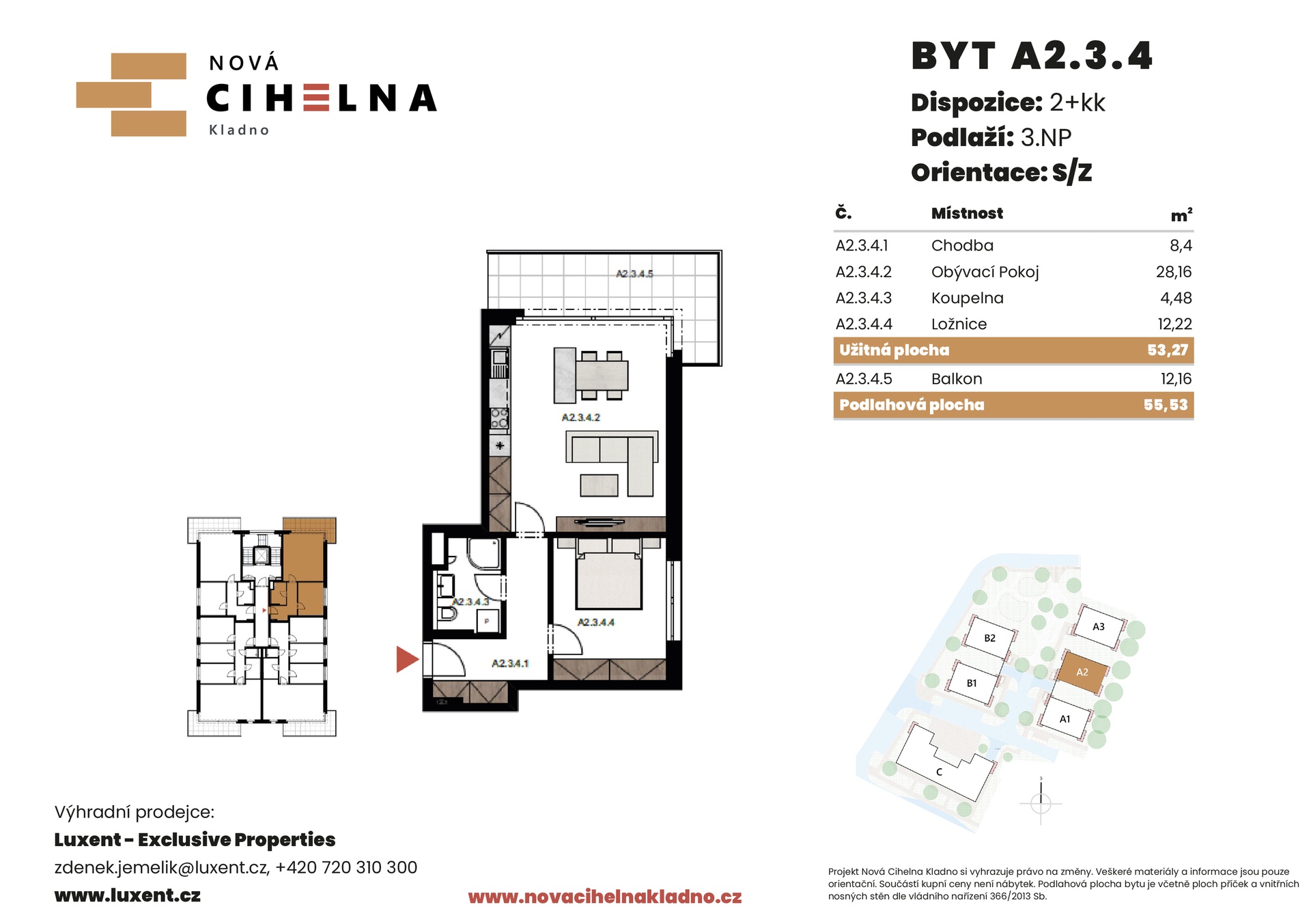| NC-B234 | 2 + kitchenette | 2nd floor | 53 m2 | 55 m2 | No / 12 m2 / No | No | Reserved | Detail |