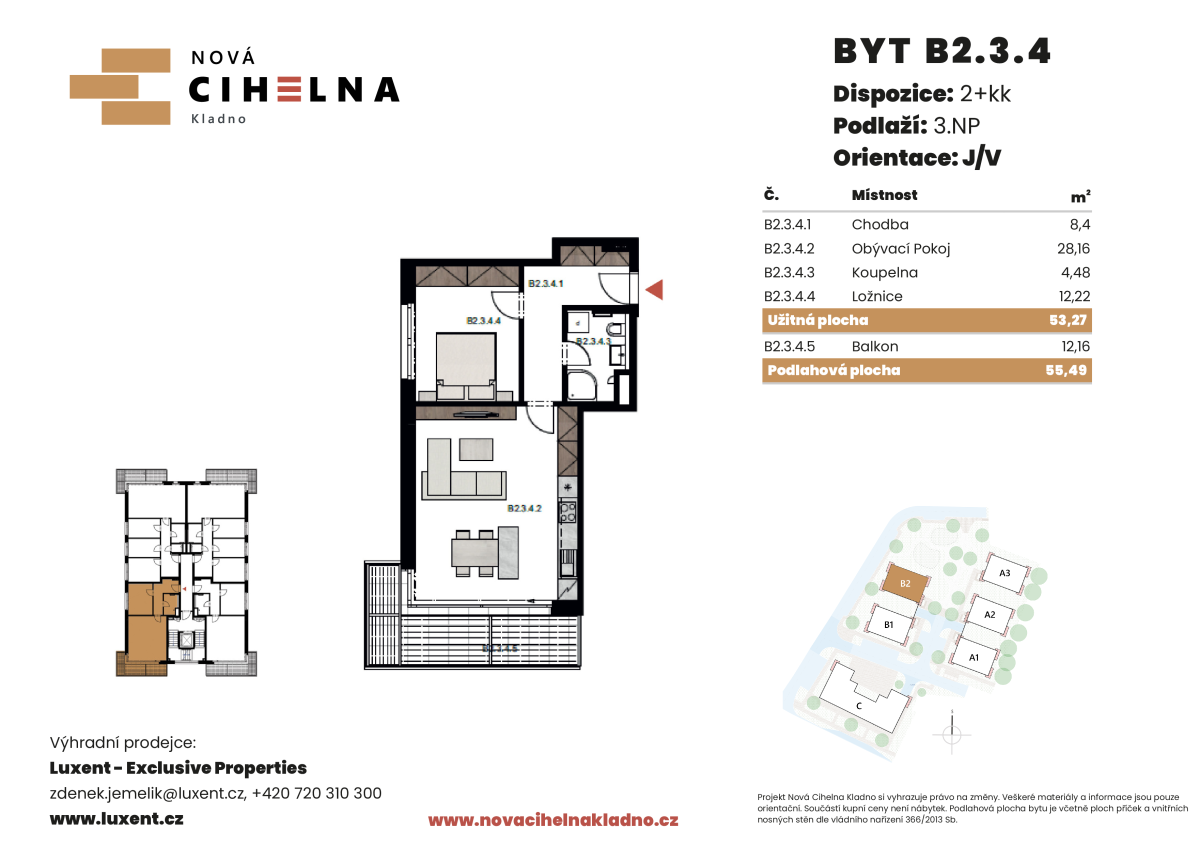 | NC-B234 | 2 + kitchenette | 2nd floor | 53 m2 | 55 m2 | No / 12 m2 / No | No | Reserved | Detail |