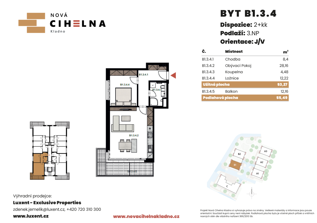 | NC-B134 | 2 + kitchenette | 2nd floor | 53 m2 | 55 m2 | No / 12 m2 / No | No | Reserved | Detail |
