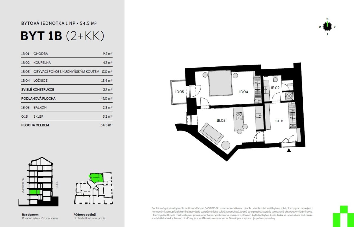 | VN67-1B | 2 + kitchenette | ground floor | 55 m2 | No / Yes / No | No | 13 150 000 CZK | Detail |