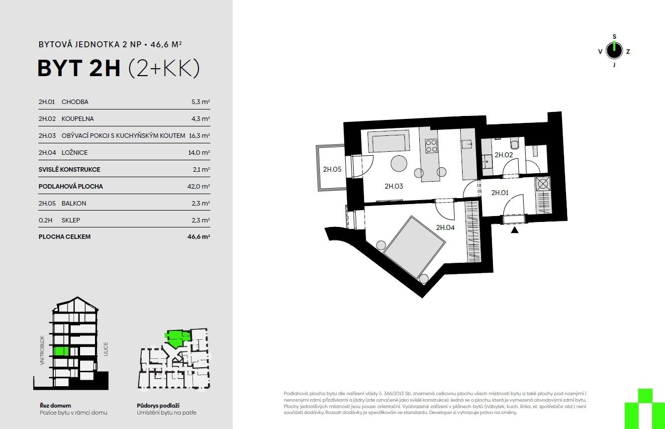 | VN67-2H | 2 + kitchenette | 1st floor | 47 m2 | No / No / No | No | 13 250 000 CZK | Detail |