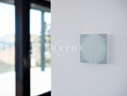 The south oriented living room has a glass wall overlooking the residential area on the southern slope and Prague below. The living room is followed by a kitchen area with dining room. There is also a stylish kitchen included. Bedroom (with dressing room and bathroom with luxury shower) is oriented to the west. In the entrance hall there is a storage space for built-in wardrobes.