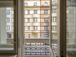 The offered apartment is bright, equipped with natural materials. The rooms are laid with quality oak parquet, the corridors have large-format tiles, the bathrooms are fitted with design standards. The windows have double and single glazing and, like the wooden doors, they are fitted with panelling to complete the Prague Art Nouveau atmosphere of the time.