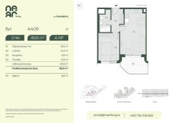 We offer for sale a 2+kt apartment with a floor area of 48.6 sqm and a balcony of 8.8 sqm in the NEAR living development project in Prague 8, located on the border between Palmovka and Karlín.