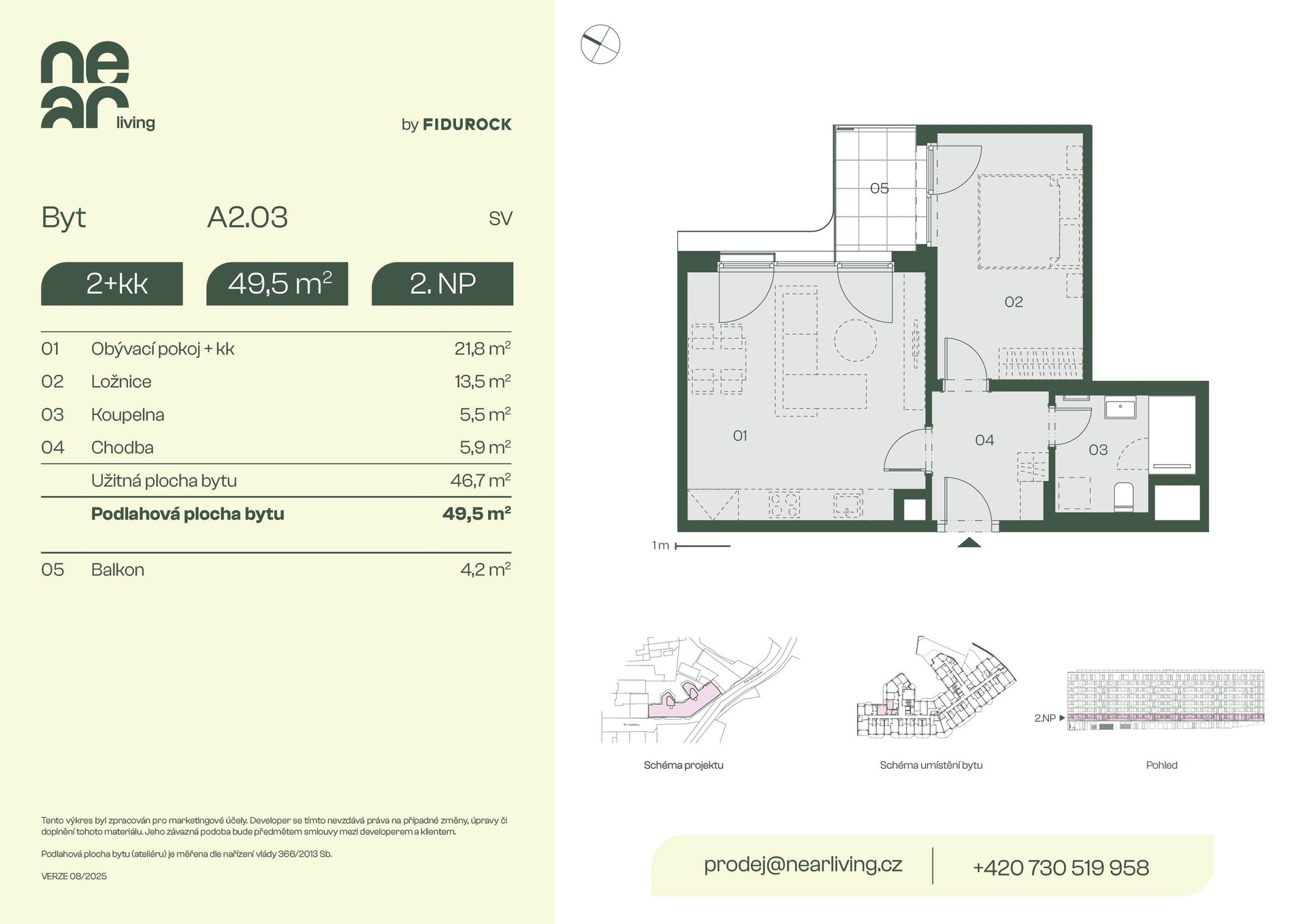 | NL-B206 | 2 + kitchenette | 1st floor | 43 m2 | 46 m2 | No / 7 m2 / No | No | 9 587 000 CZK | Detail |