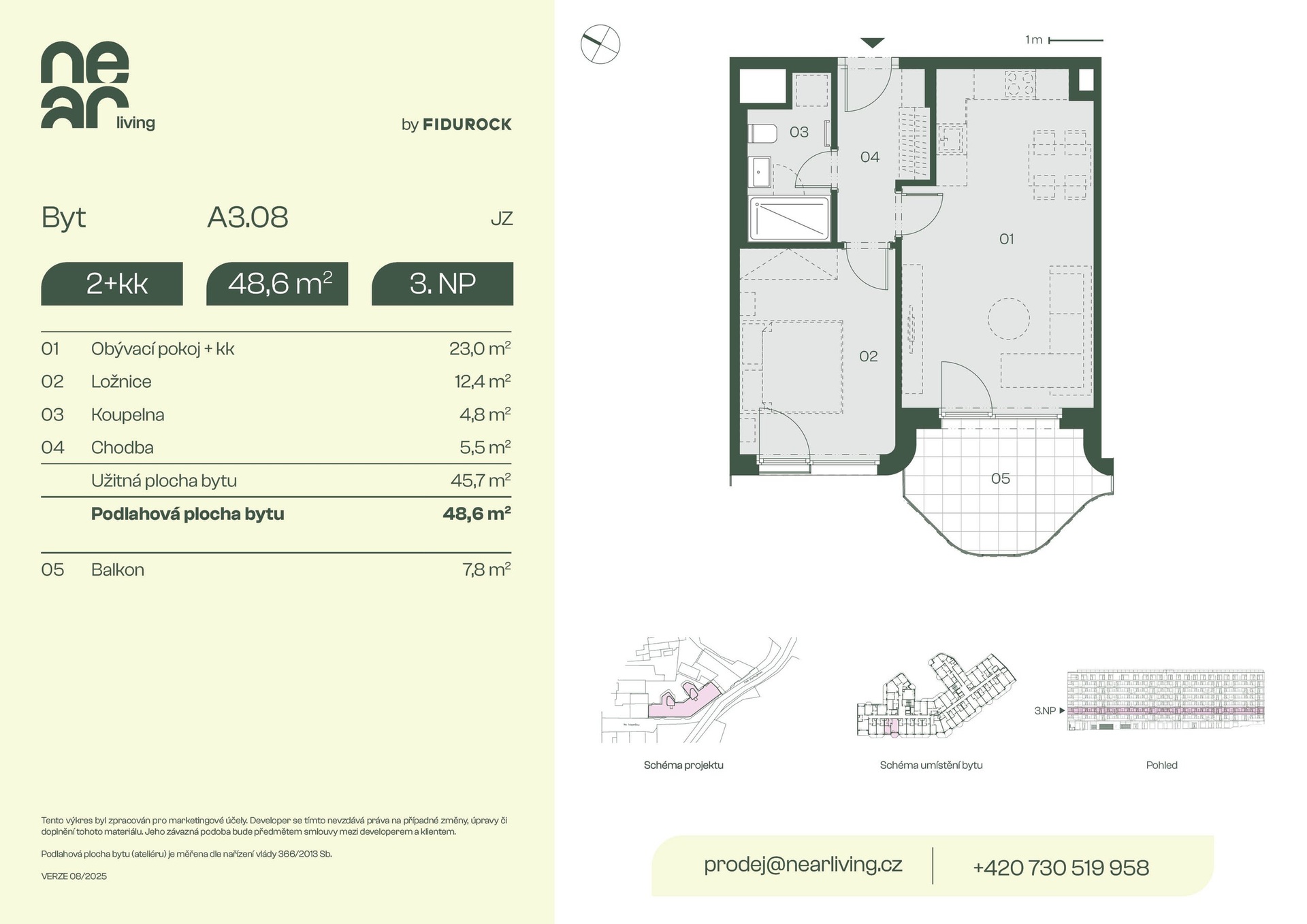 We are offering for sale a 2+kt apartment with a floor area of 45.7 sqm and a 7.8 sqm balcony in the NEAR living development project in Prague 8, located on the border between Palmovka and Karlín.