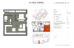 We offer for sale a luxury mountain apartment of 2 + kk with a living area of 59.6 m² and a floor area of 66.7 m². The apartment is located on the attic floor of the apartment house "A" in the newly emerging development project LAKA LIVING in Sumava. The apartment is oriented SE-SE. The apartment consists of a living room (31.5 m²), bedroom (12.4 m²), bathroom with toilet (7 m²) and hallway (8.7 m²).