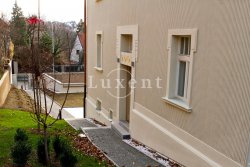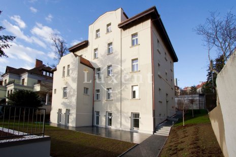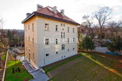 The Na Hřebenkách residential area is situated on the southern slope of Strahov hill and is part of Smichov. Historically, this part of the city has been one of the most sought-after and exclusive locations, as evidenced by the prevailing architecturally and historically extremely valuable villa buildings. Most of the historic buildings have undergone costly renovations and offer a high standard of living with a unique atmosphere. Despite its proximity to the city centre, it is a quiet residential area with a significant proportion of green space.