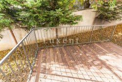 The layout includes a spacious entrance hall, two bedrooms, living room, bathroom with bathtub, kitchen with dining room, pantry and separate toilet. One of the bedrooms (20 m²), located on the second floor of the apartment, is accessible by a wooden staircase. The kitchen is fully equipped with all appliances (hob, hot-air oven, extractor hood, dishwasher). From the hallway there is access to the spacious terrace and the common garden.