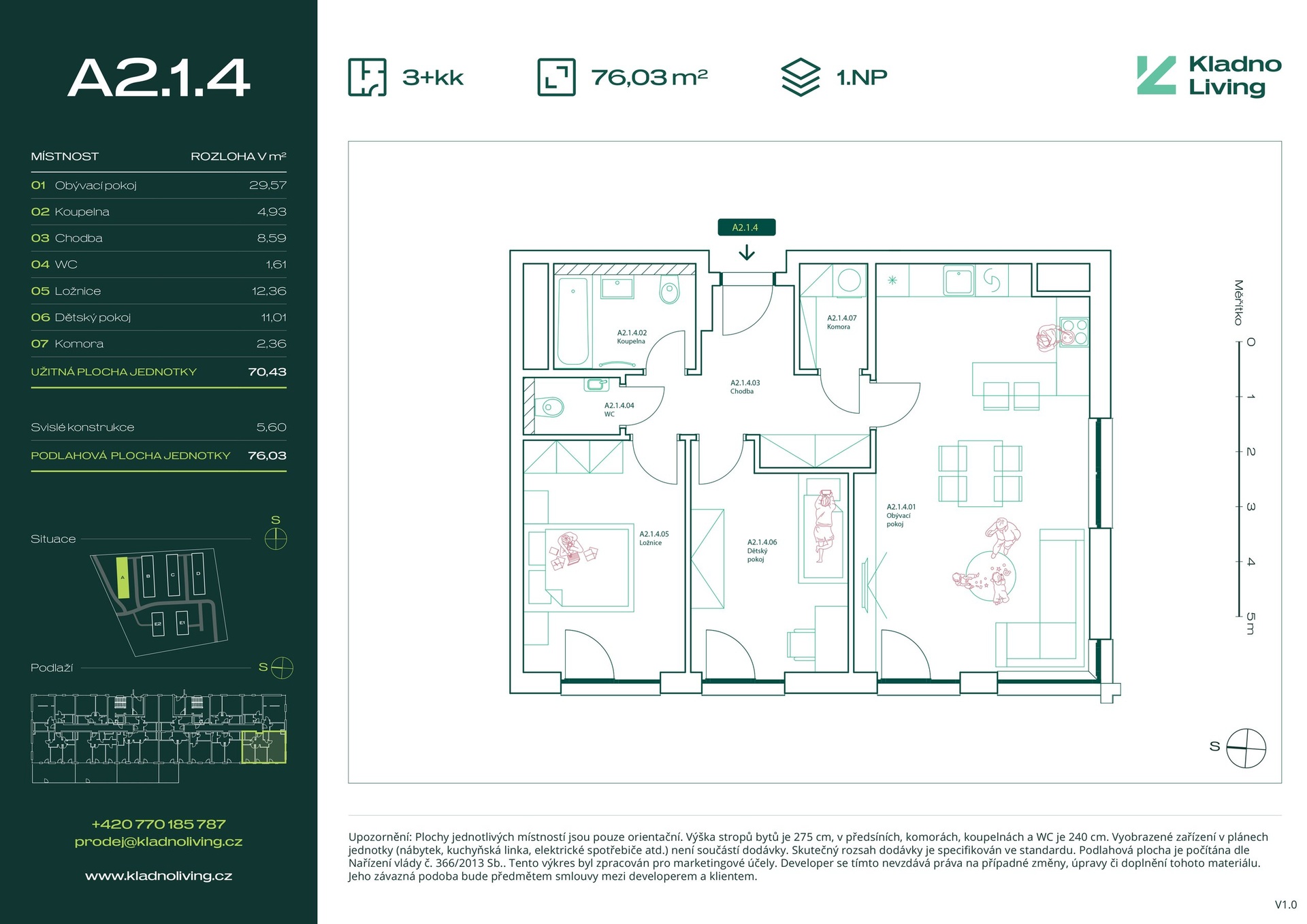 | KL-A125 | 3 + kitchenette | 1st floor | 71 m2 | 76 m2 | No / 5 m2 / No | No | 7 680 000 CZK | Detail |