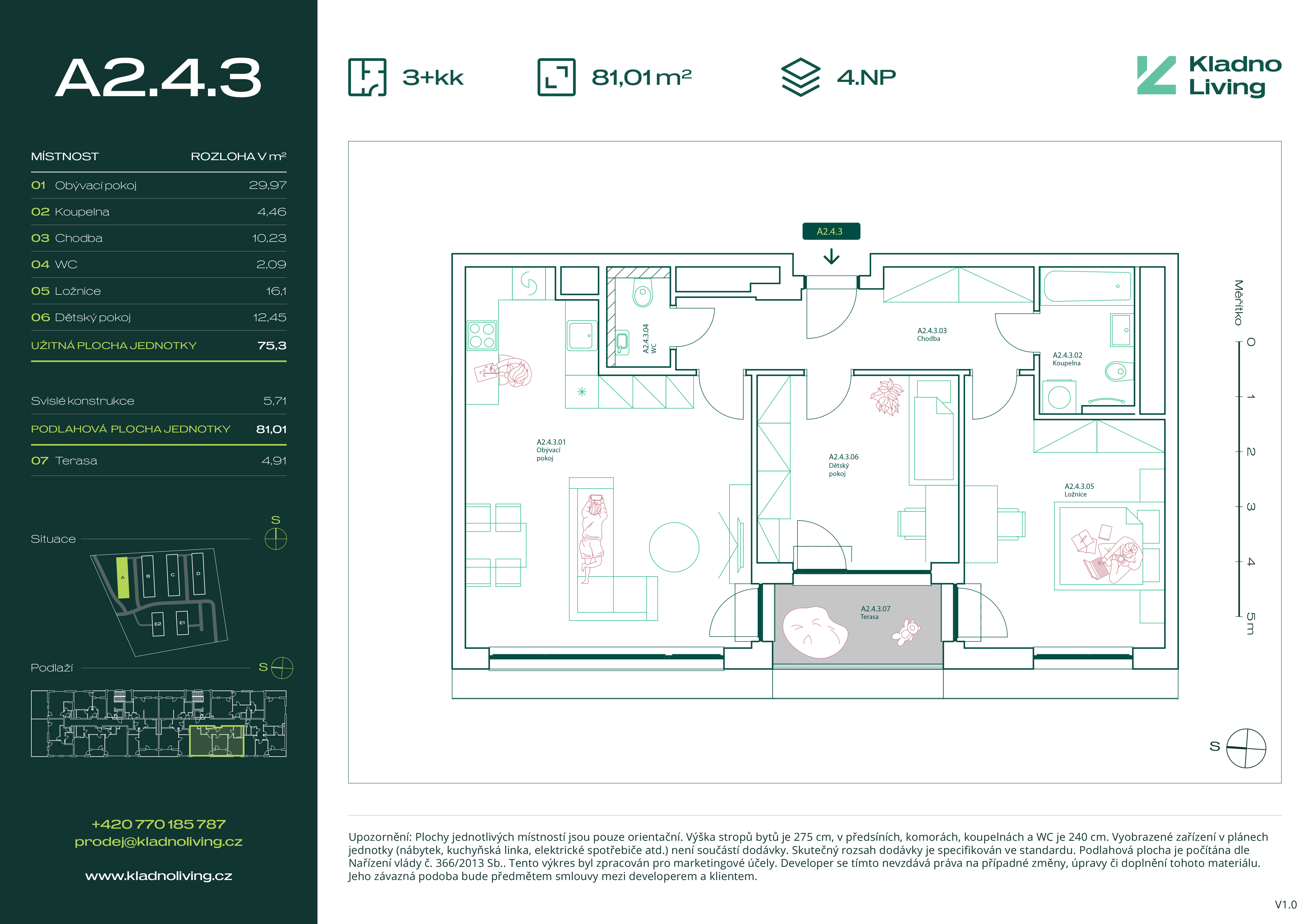 | KL-A125 | 3 + kitchenette | 1st floor | 71 m2 | 76 m2 | No / 5 m2 / No | No | 7 680 000 CZK | Detail |