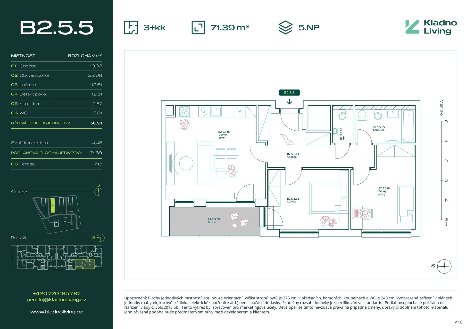 | KL-A125 | 3 + kitchenette | 1st floor | 71 m2 | 76 m2 | No / 5 m2 / No | No | 7 680 000 CZK | Detail |