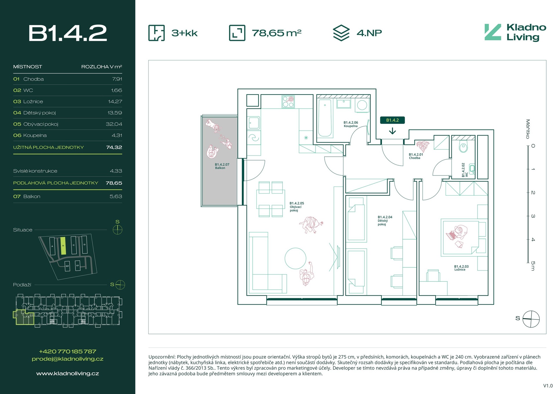 We are offering for sale a modern apartment 3+kt with a floor area of 78,7 sqm and a balcony of 5,6 sqm in the Kladno Living residential project, which is being built in one of the most attractive locations in the city of Kladno – Kročehlavy. This new development project represents a unique opportunity for those looking for new apartments in Kladno or an investment in real estate with high appreciation potential.