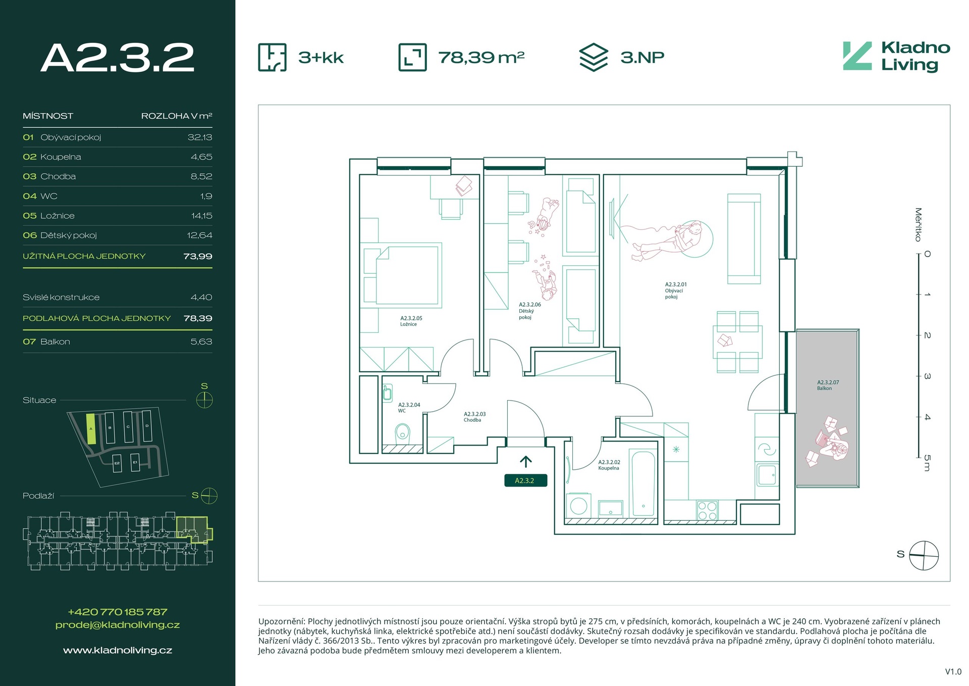 We are offering for sale a modern apartment 3+kt with a floor area of 78,3 sqm and a balcony of 5,6 sqm in the Kladno Living residential project, which is being built in one of the most attractive locations in the city of Kladno – Kročehlavy. This new development project represents a unique opportunity for those looking for new apartments in Kladno or an investment in real estate with high appreciation potential.