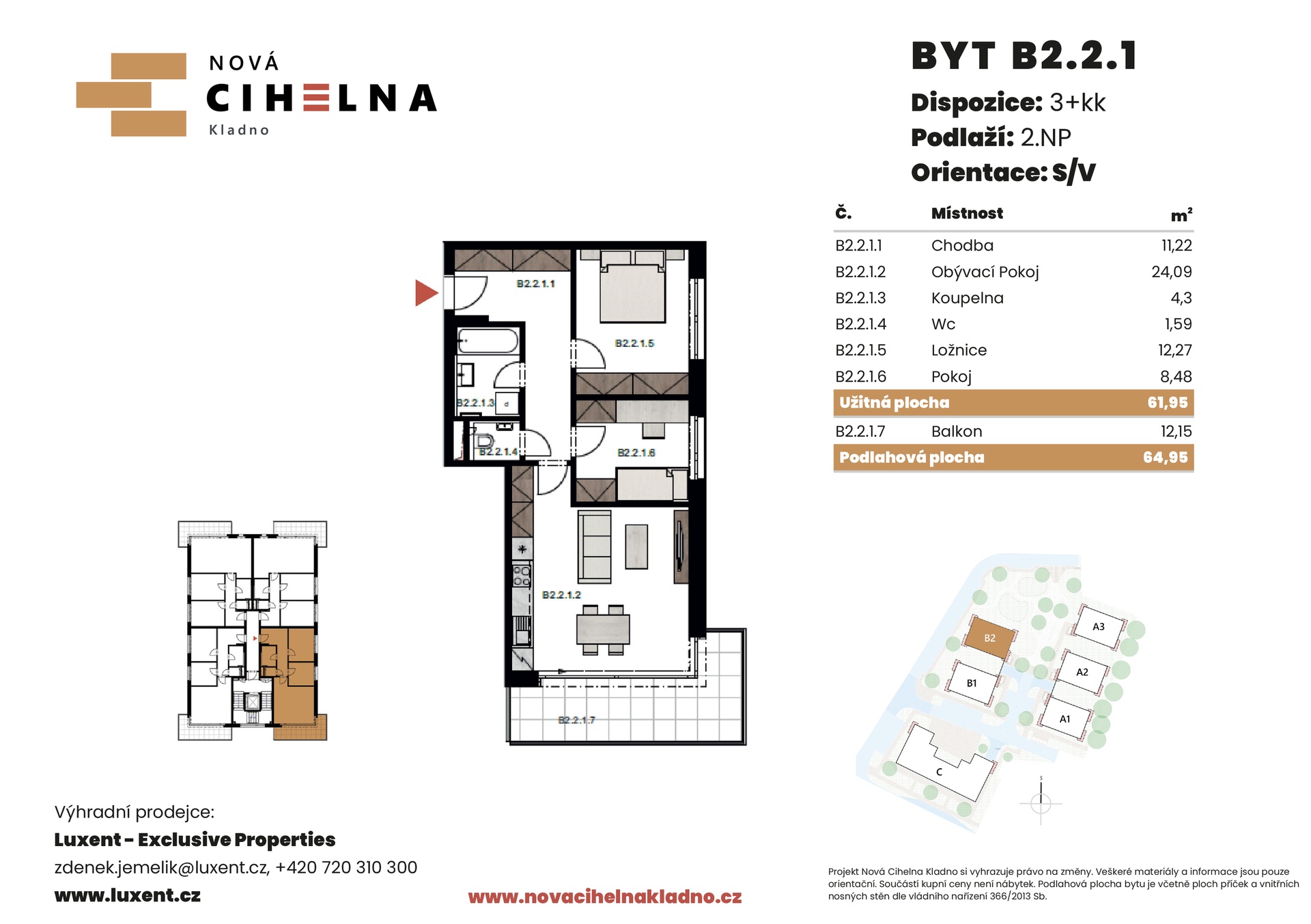 | NC-B224 | 3 + kitchenette | 1st floor | 62 m2 | 65 m2 | No / 12 m2 / No | No | Reserved | Detail |