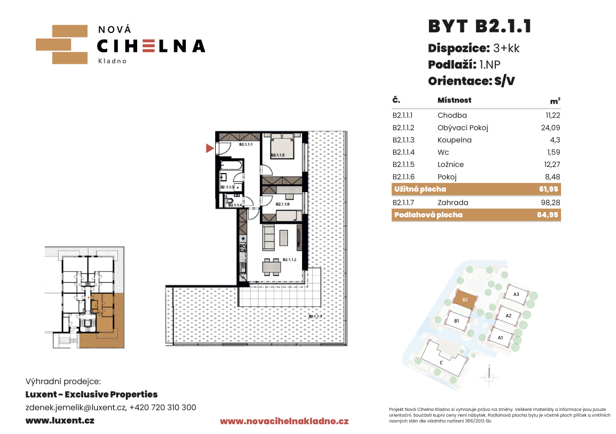 | NC-B211 | 3 + kitchenette | ground floor | 62 m2 | 65 m2 | No / No / No | Yes (98 m2) | 7 945 060 CZK | Detail |