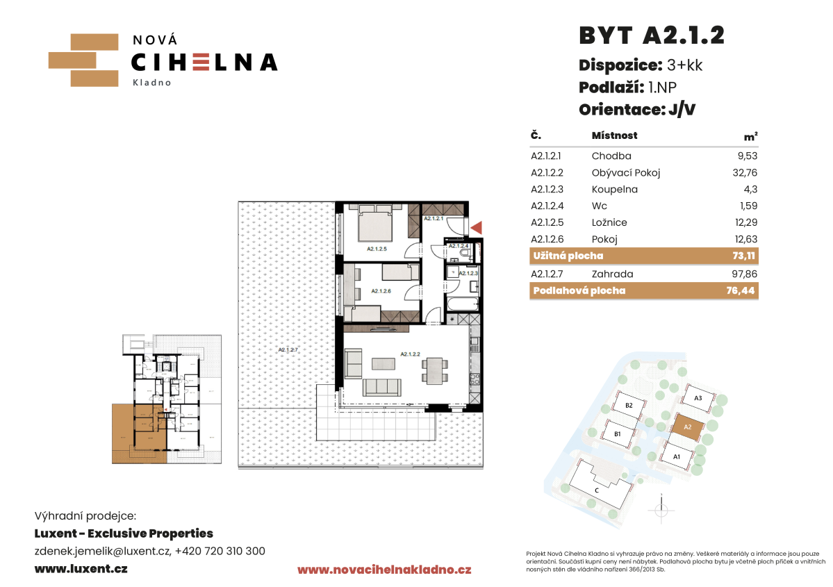 | NC-A213 | 3 + kitchenette | ground floor | 73 m2 | 76 m2 | No / No / No | Yes (98 m2) | Reserved | Detail |