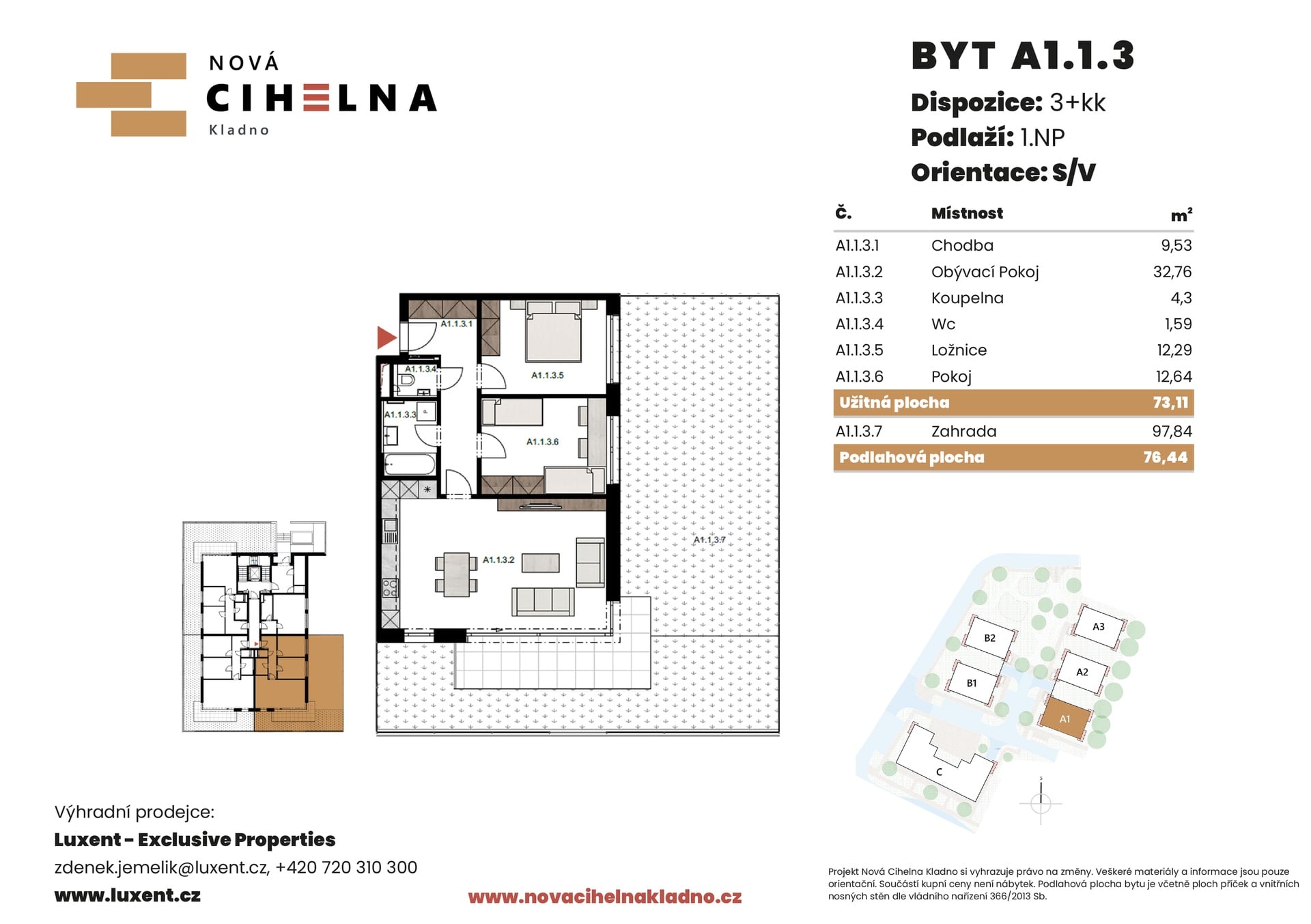| NC-B113 | 3 + kitchenette | ground floor | 73 m2 | 76 m2 | No / No / No | Yes (58 m2) | Reserved | Detail |