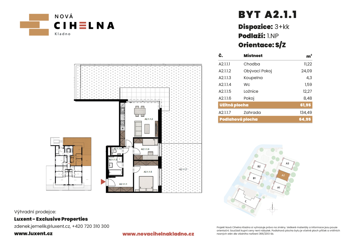 | NC-A211 | 3 + kitchenette | ground floor | 62 m2 | 65 m2 | No / No / No | Yes (134 m2) | 7 995 570 CZK | Detail |