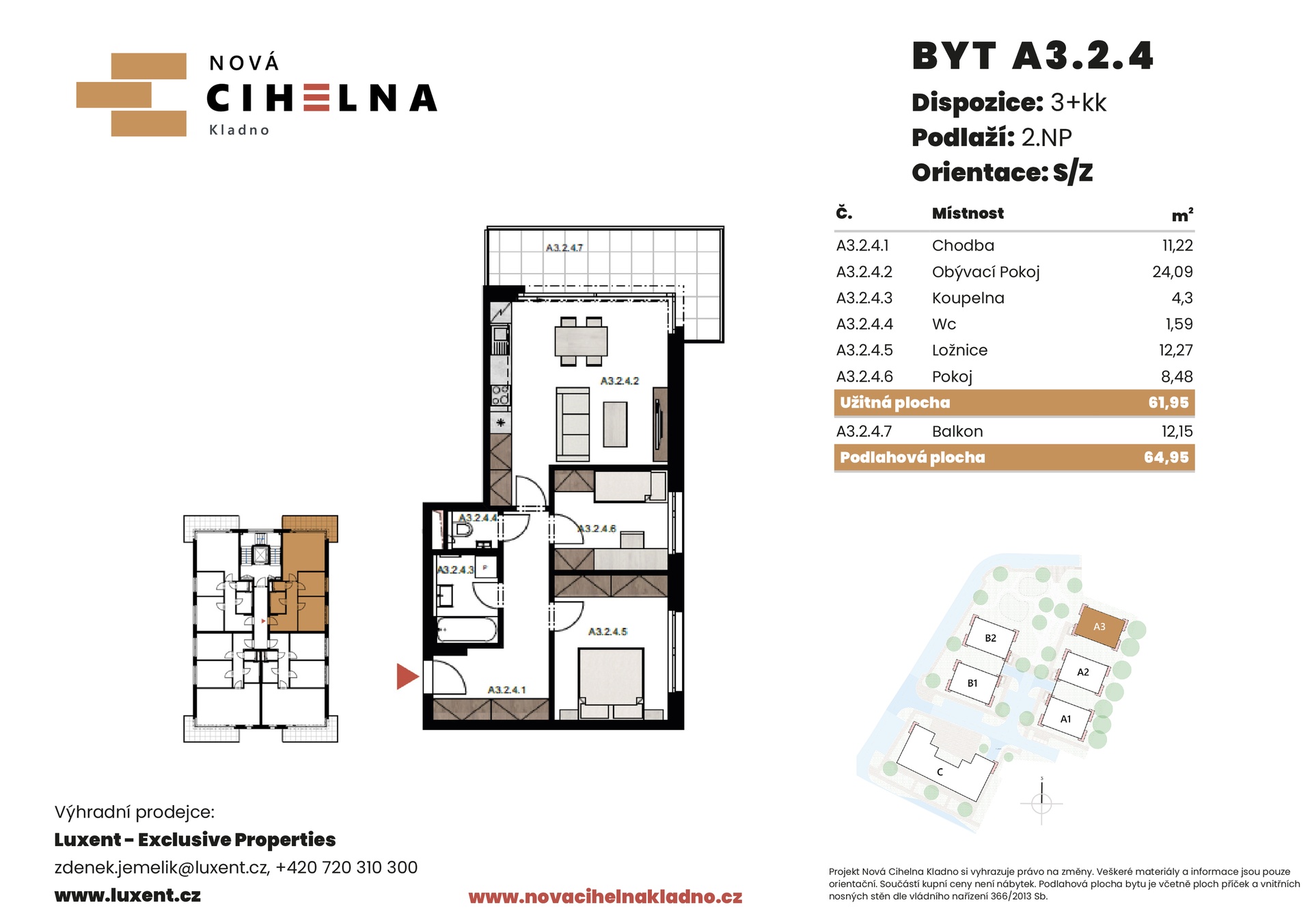 | NC-A324 | 3 + kitchenette | 1st floor | 62 m2 | 65 m2 | No / 12 m2 / No | No | Reserved | Detail |