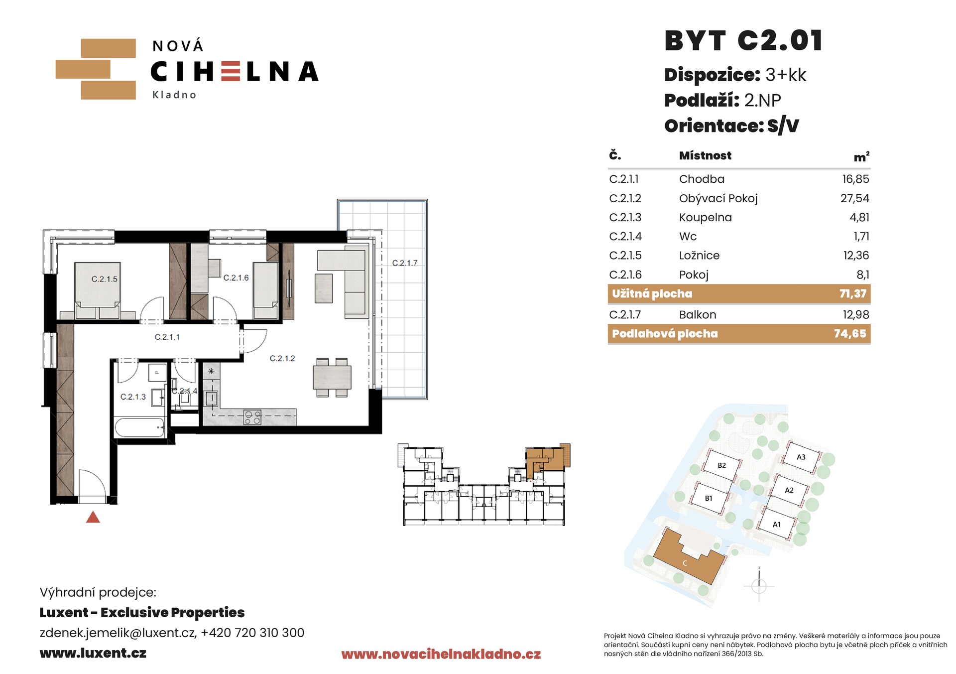 | NC-C201 | 3 + kitchenette | 1st floor | 71 m2 | 75 m2 | No / 13 m2 / No | No | Reserved | Detail |