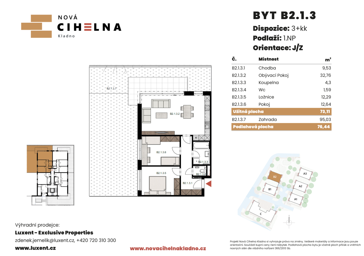 | NC-B213 | 3 + kitchenette | ground floor | 73 m2 | 76 m2 | No / No / No | Yes (95 m2) | Reserved | Detail |