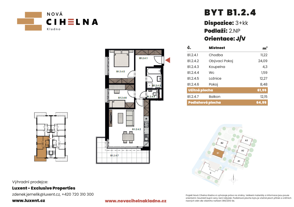| NC-B224 | 3 + kitchenette | 1st floor | 62 m2 | 65 m2 | No / 12 m2 / No | No | Reserved | Detail |
