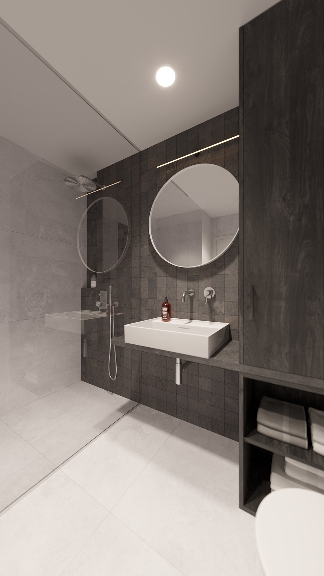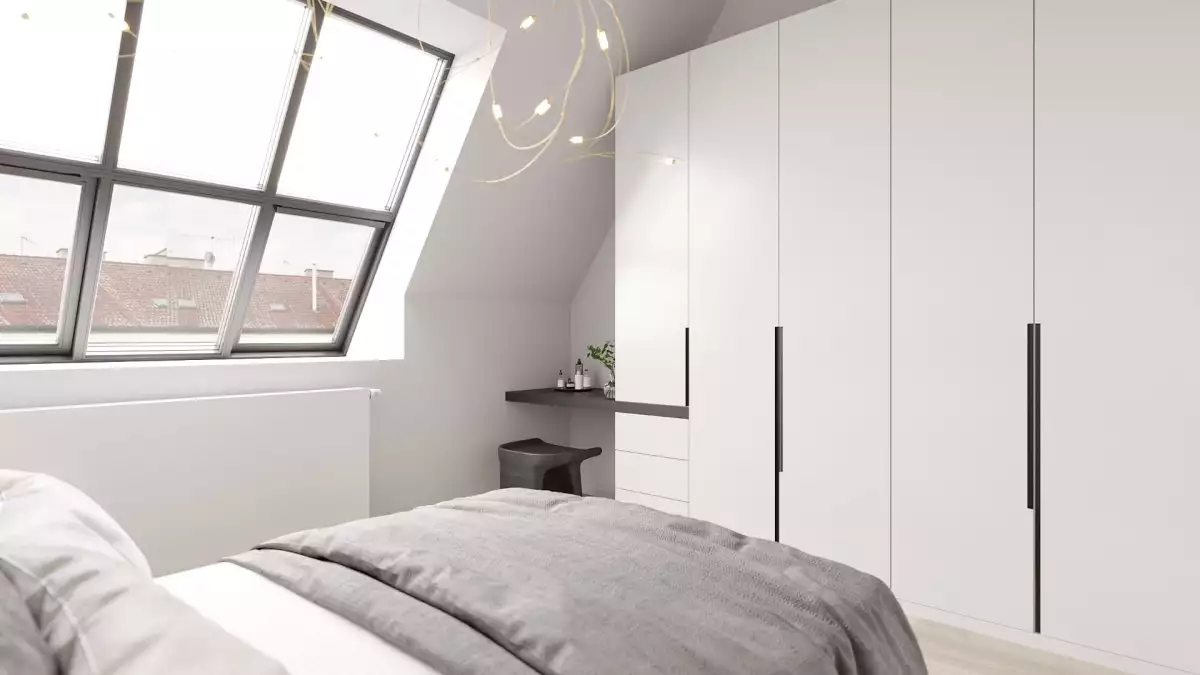 The layout offers an entrance hall, living room with kitchenette, two bedrooms, bathroom and separate toilet. All the offered apartments stand out for their high standard, which includes wooden floors, quality tiles and sanitary ware, lighting and more. Kitchen units and built-in wardrobes can be supplied above the list price.