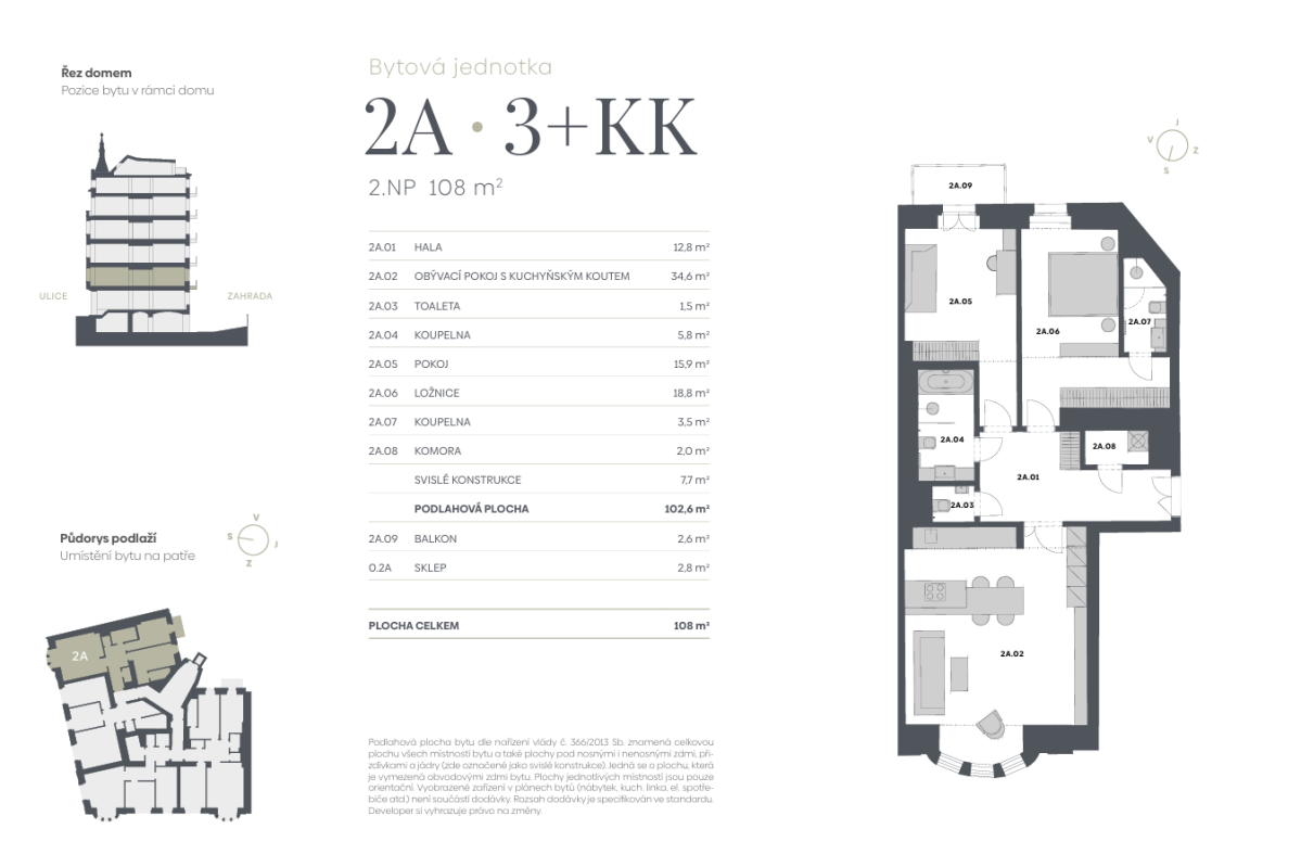 | SL-2A | 3 + kitchenette | 1st floor | 103 m2 | No / 3 m2 / No | No | 31 086 900 CZK | Detail |