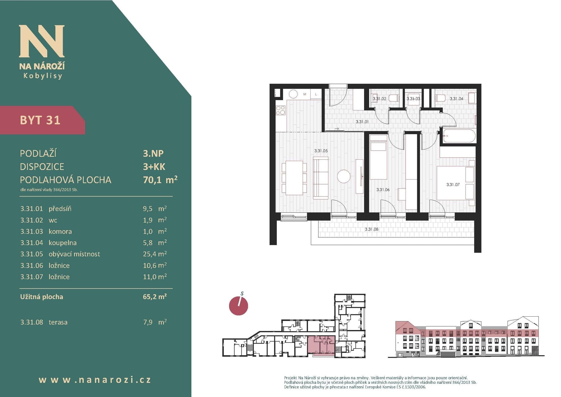 | NN-31 | 3 + kitchenette | 3rd floor | 65 m2 | 70 m2 | 8 m2 / No / No | No | on request | Detail |