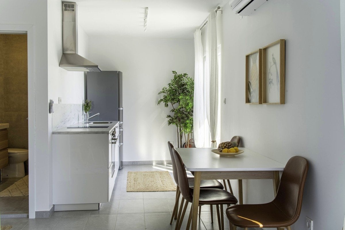 The 51 m² interior includes a living room connected to the kitchen and dining room, two bedrooms, and two bathrooms. The space is bright and practically arranged, with large glass surfaces connecting the interior to a spacious terrace. The 31 m² terrace offers unobstructed views of the sea and the surrounding area, creating a unique atmosphere and adding value to the property.