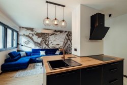 The interior is tastefully and functionally designed with attention to quality craftsmanship and contemporary finishes. The apartment is sold fully furnished and air-conditioned, ready for immediate use or rental. A sunny terrace provides the perfect spot for morning coffee or relaxing evenings. A private garage space in the building is available for purchase.