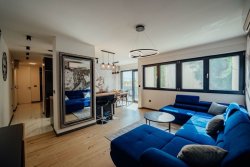 We are pleased to offer for sale this luxurious and fully furnished apartment with a terrace and optional garage parking, located in a sought-after residential area on the southern side of the city of Split, in Croatia’s picturesque Dalmatia region. Just 700 meters from the sea, the apartment offers 66 m² of living space, two bedrooms, two bathrooms, and a spacious living room seamlessly connected to a modern kitchen.
