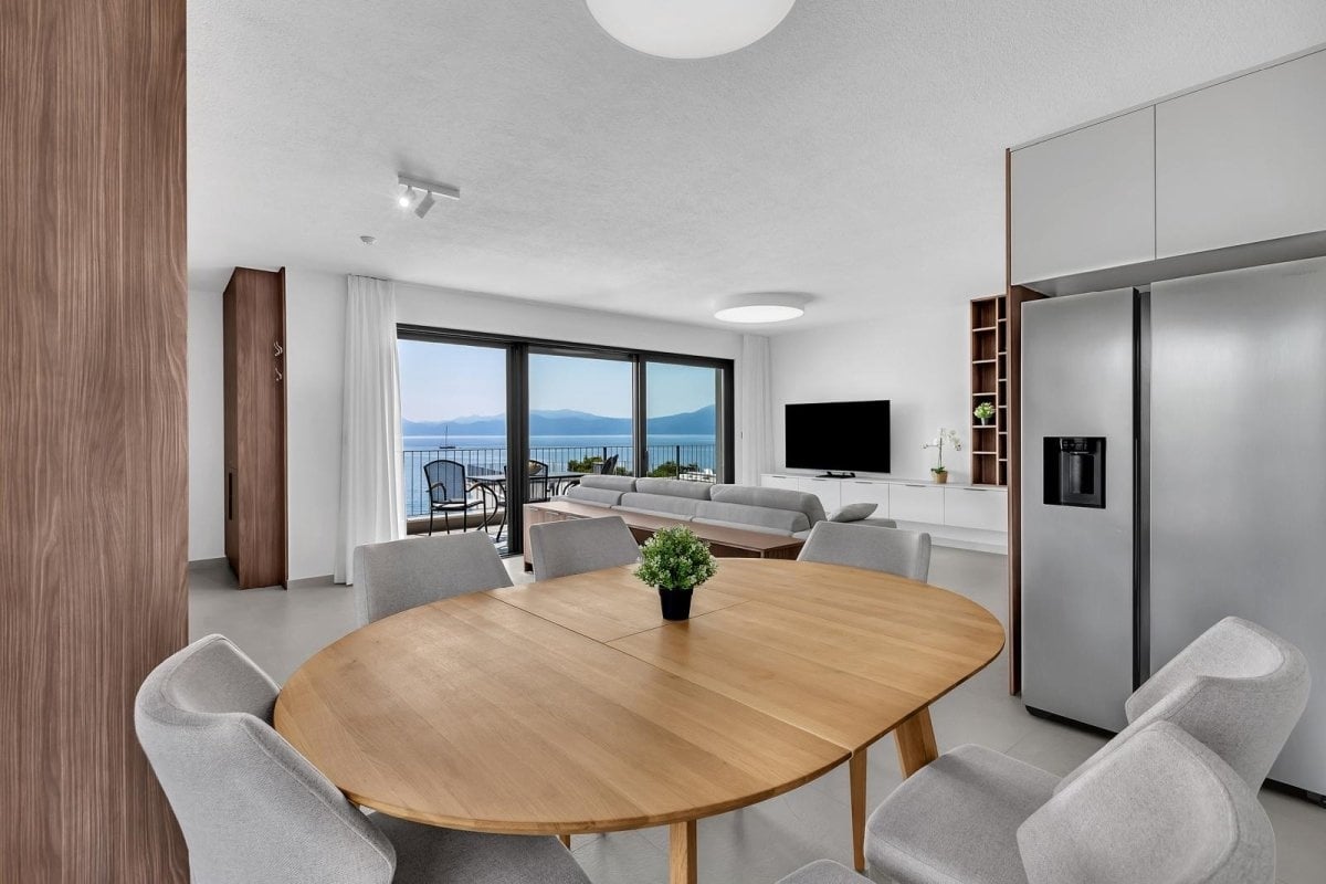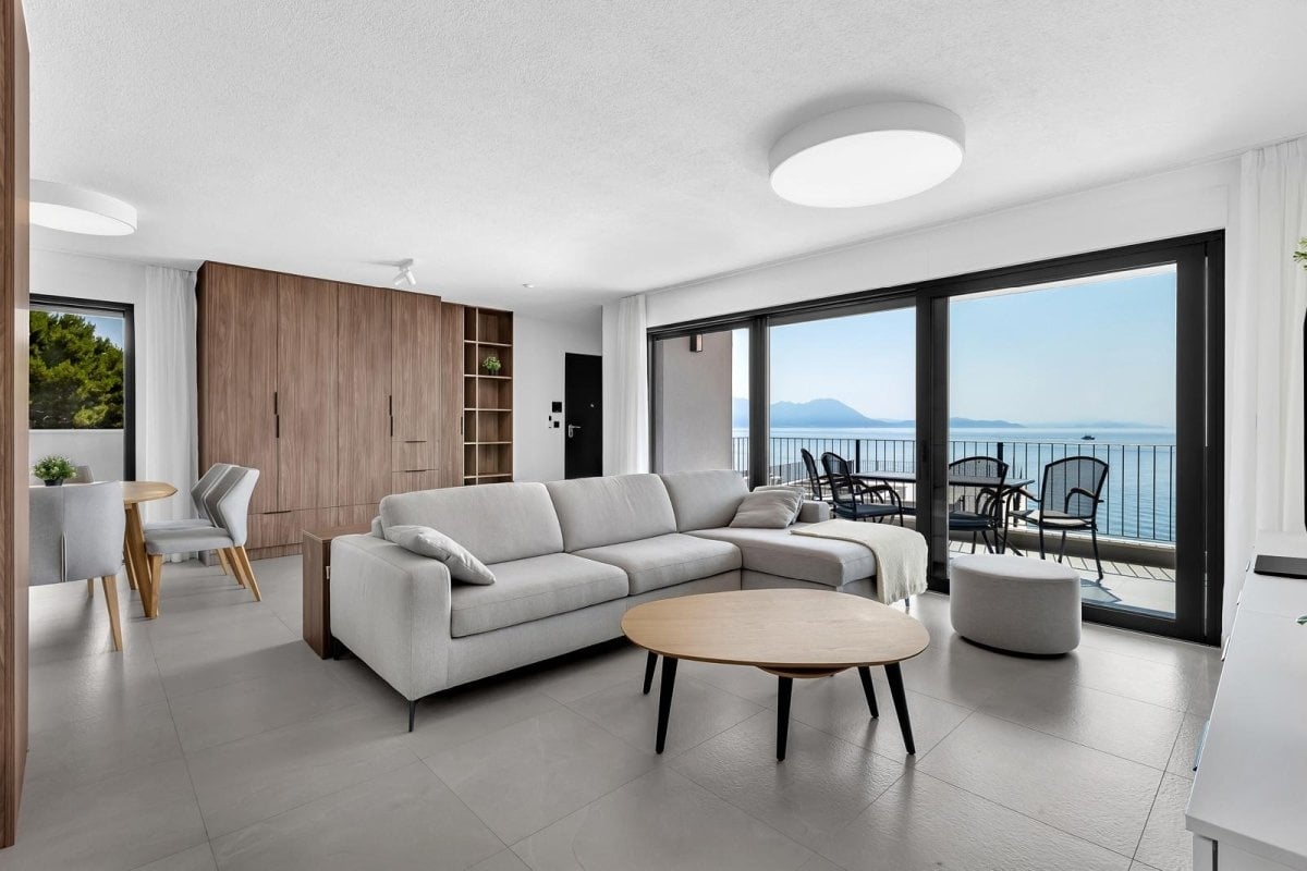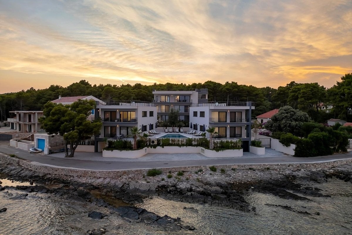 We offer for sale a modern apartment with breathtaking views in the first row by the sea. The property is located near the village of Sućuraj on the island of Hvar in Croatia. Thanks to its southern orientation and combination of comfort, elegant design, and modern Italian interior, it is the ideal place for a luxurious Mediterranean vacation.