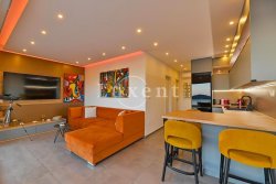 The penthouse is offered fully furnished with high-end furniture and appliances. It features full air conditioning and underfloor heating, ensuring year-round comfort. The building includes a shared swimming pool, and the property comes with one outdoor and one garage parking space.