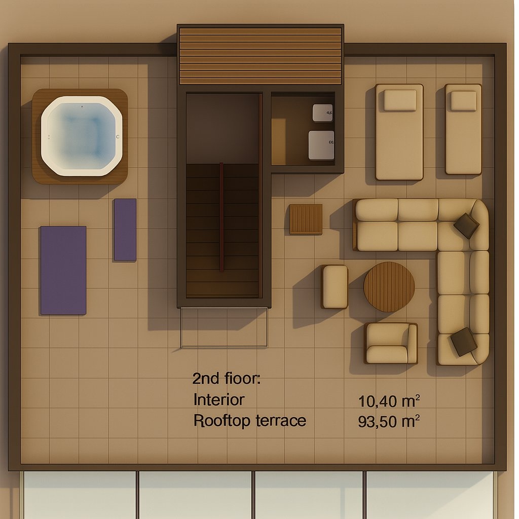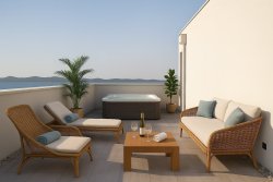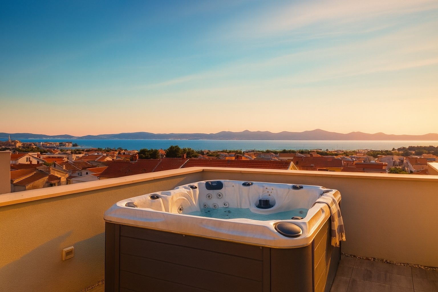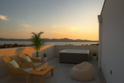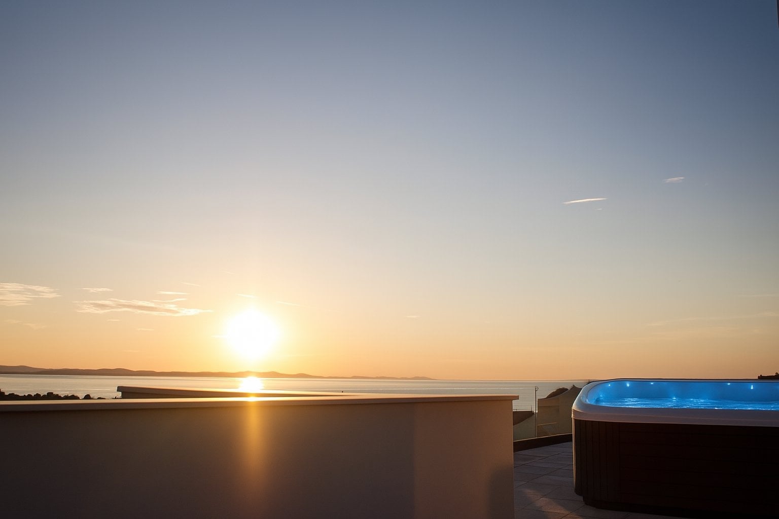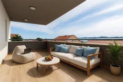 A unique advantage is the internal staircase leading to a magnificent 93.50 sqm roof terrace. This terrace offers a magnificent panoramic view of the sea and the historic city of Zadar. The terrace is equipped with a whirlpool, ideal for relaxation.
