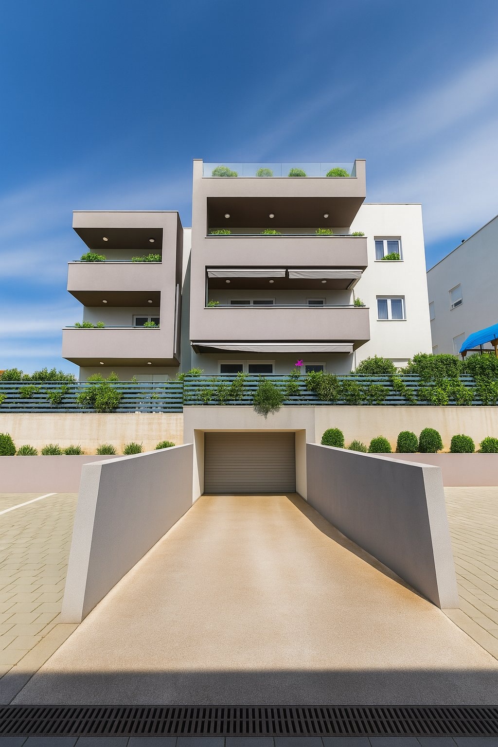 The apartment also has two outdoor parking spaces and a 20 sqm garage. The sea is only 800 meters away and all amenities are nearby, including restaurants, cafes, and shops. Zadar Airport is 11 km away.