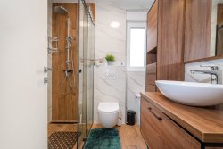 The property enjoys an excellent location just 350 meters from the sea, in a quiet part of the Zadar area. Northern Dalmatia stretches along the coastline from Biograd na Moru to the Velebit mountain range, with the flat Ravni Kotari region in the hinterland. The entire area is well connected by a modern highway network. Zadar, with its historic old town, shops, restaurants, and marina, is easily accessible by car.