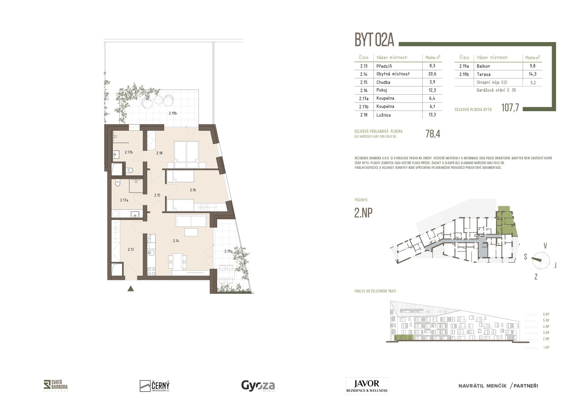 | SB-3 | 2 + kitchenette | 1st floor | 63 m2 | 68 m2 | 78 m2 / No / No | No | 10 844 800 CZK | Detail |