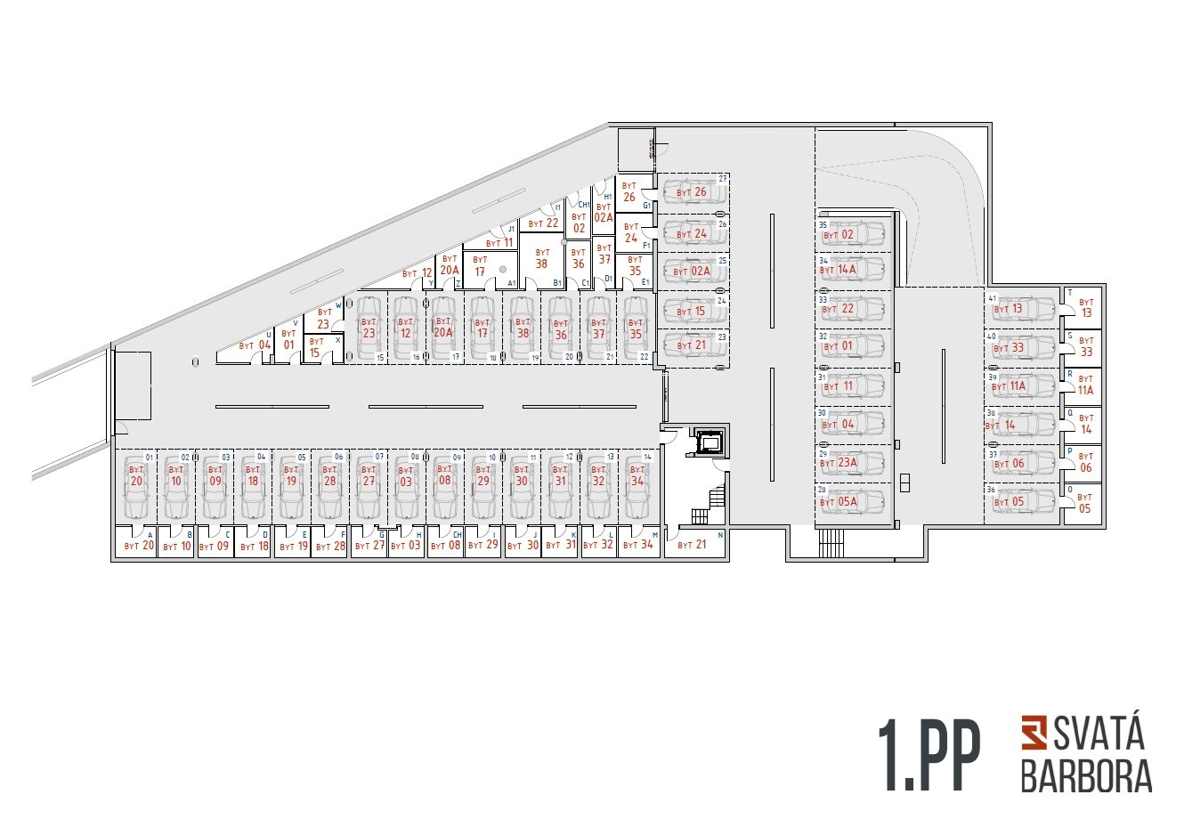 | SB-5 | 2 + kitchenette | 1st floor | 53 m2 | 57 m2 | 55 m2 / No / No | No | 9 587 500 CZK | Detail |