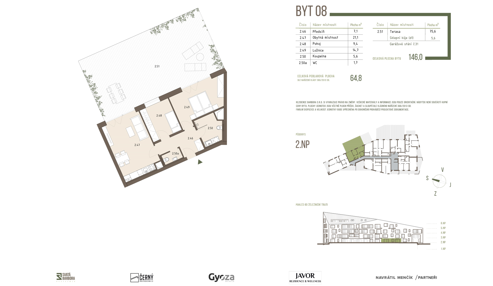 | SB-8 | 3 + kitchenette | 1st floor | 60 m2 | 65 m2 | 14 m2 / 10 m2 / No | No | on request | Detail |