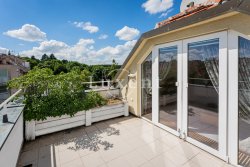 We offer for sale a duplex apartment 4+1 with a floor area of 144 sqm with a terrace (13.5 sqm) and a private garage for two cars (35 sqm) in a prestigious residential area Na Hanspaulce, Prague 6. The apartment is situated in 3rd floor of an apartment building from 1940 without elevator. The sale includes a non-residential space of 22.4 sqm, located in the basement of the house.