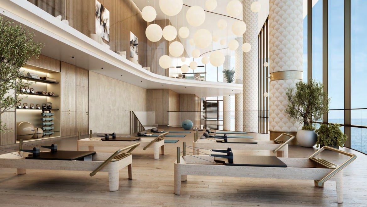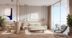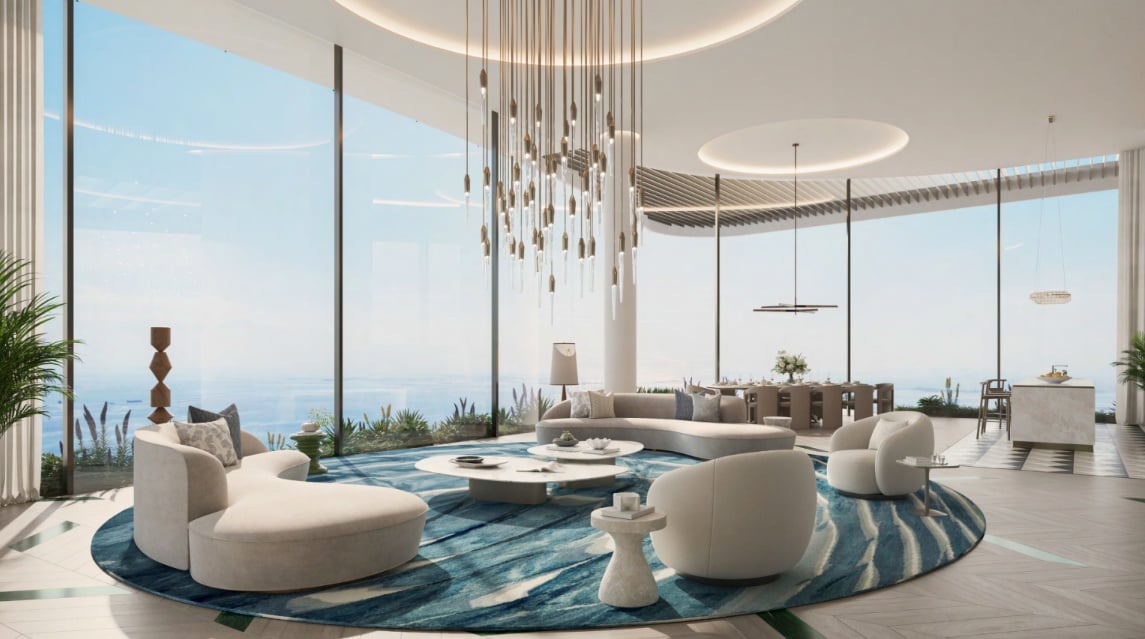 The suite comes with top-of-the-range amenities, including the iconic infinity pool, which offers the unique sensation of floating above the bay. A stylish barbecue area with seating for socialising under the stars and a state-of-the-art fitness centre with the latest technology are standard. A safe outdoor play area is available for families with children. Soothing water features contribute to relaxation, evoking an atmosphere of peace and tranquility. One parking space is included with the possibility of purchase.