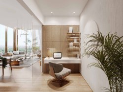This unit is designed to meet the demands of family living and a representative lifestyle. The dominant feature of the apartment is the spacious living area with a kitchen and dining area, which flows seamlessly onto a spacious balcony offering plenty of space for outdoor seating, a relaxation area, and social gatherings. Three separate bedrooms provide maximum privacy and comfort, with the layout naturally separating the living and sleeping areas of the apartment. Large floor-to-ceiling windows provide plenty of natural light and enhance the feeling of airiness and openness of the interior. The materials and design elements used have been selected with an emphasis on quality, elegance, and long-term value.